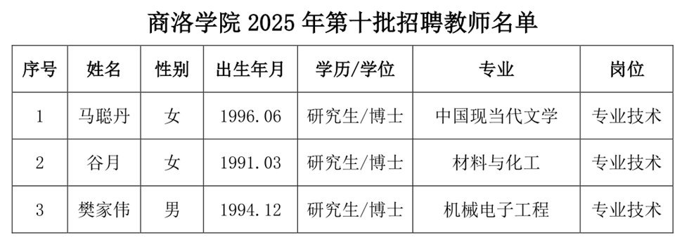 附件:商洛学院2025年第十批招聘教师名单